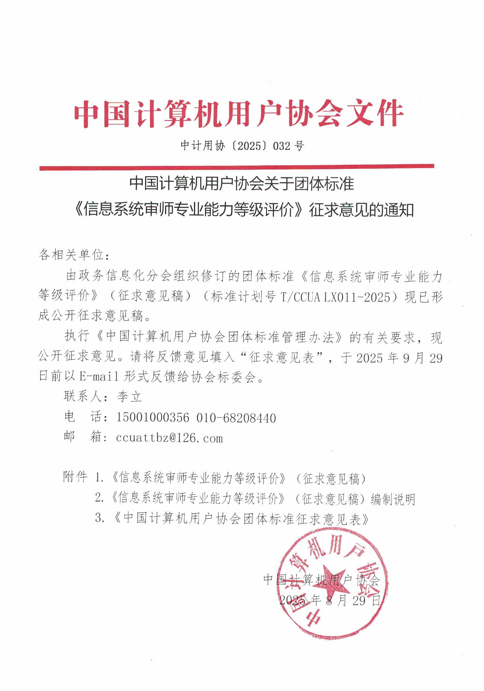 关于团体标准《信息系统审师专业能力等级评价》征求意见的通知