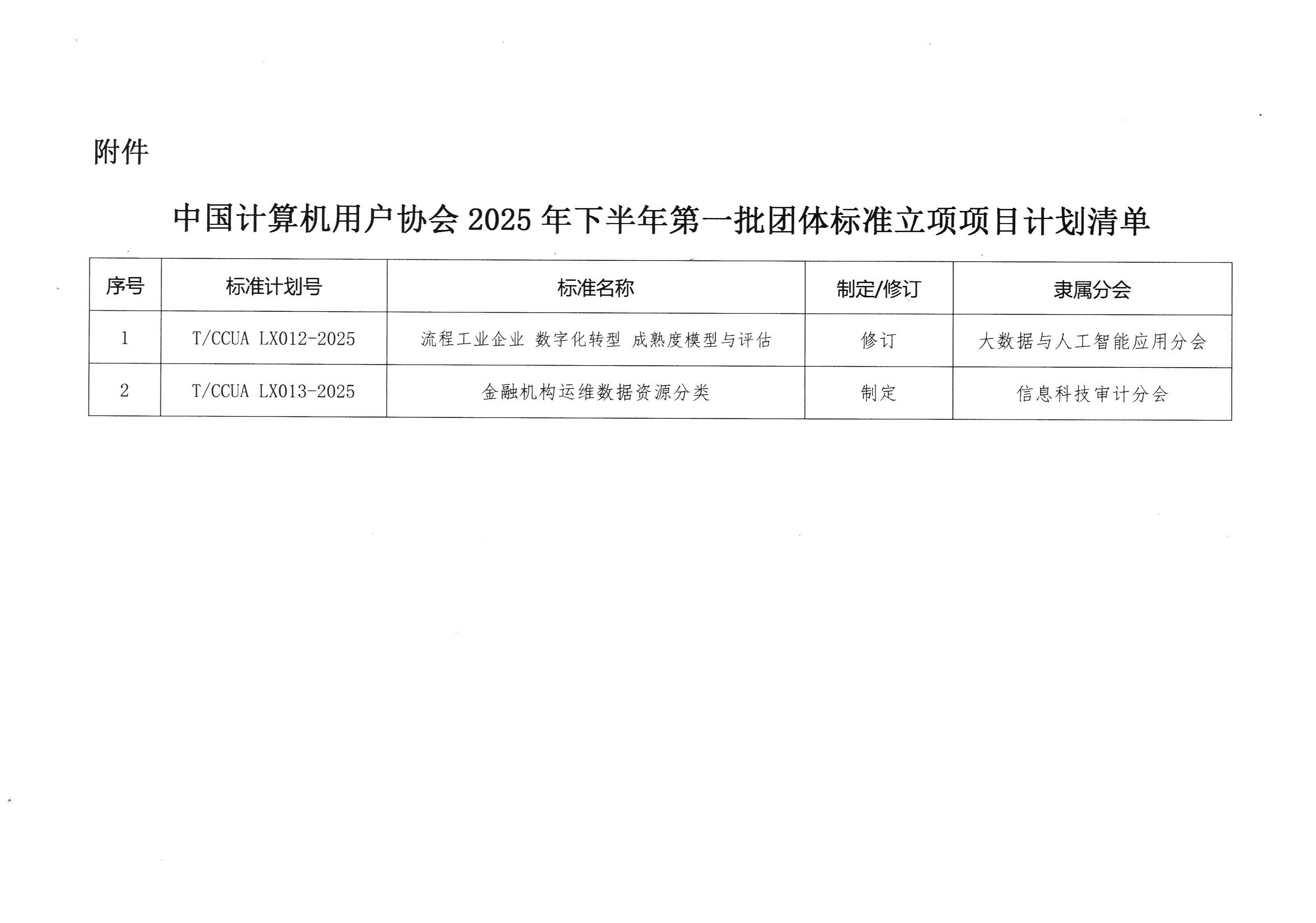 关于公布2025年下半年第一批团标立项项目计划清单的通知