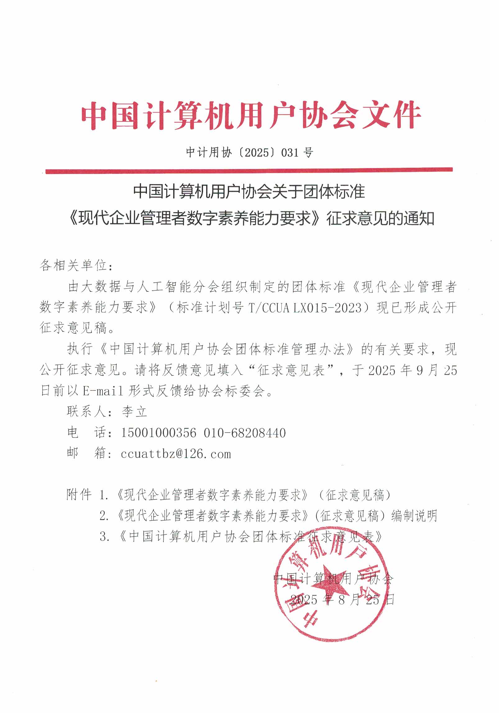 关于团体标准《现代企业管理者数字素养能力要求》征求意见的通知